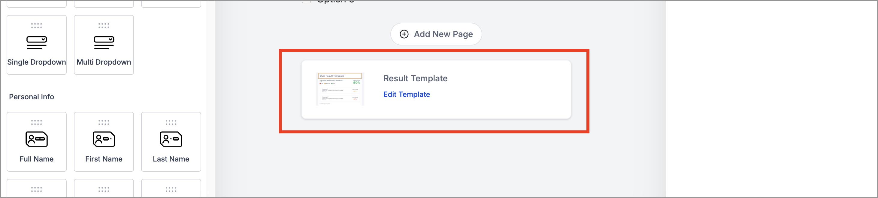 Return to the quiz editor, scroll to the bottom, and click Edit Template under Result Template.