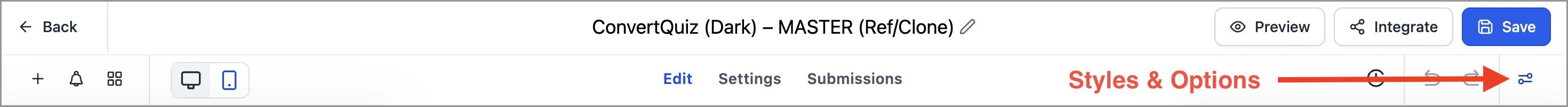 Without selecting any quiz element, click Styles & Options (right side of the top panel).