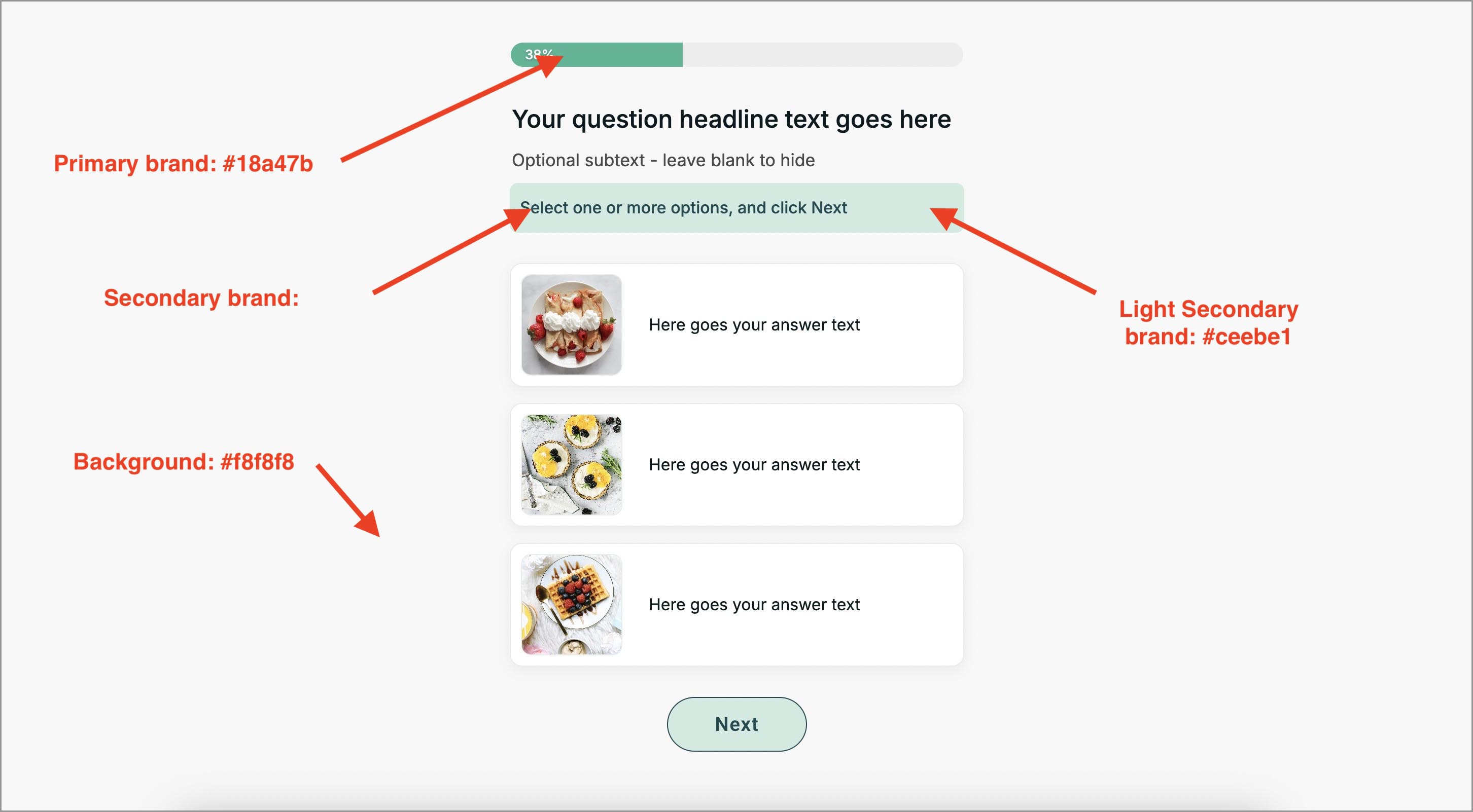 We’ll explain how to edit questions in the next part. For now, let’s quickly match the colors to your brand.