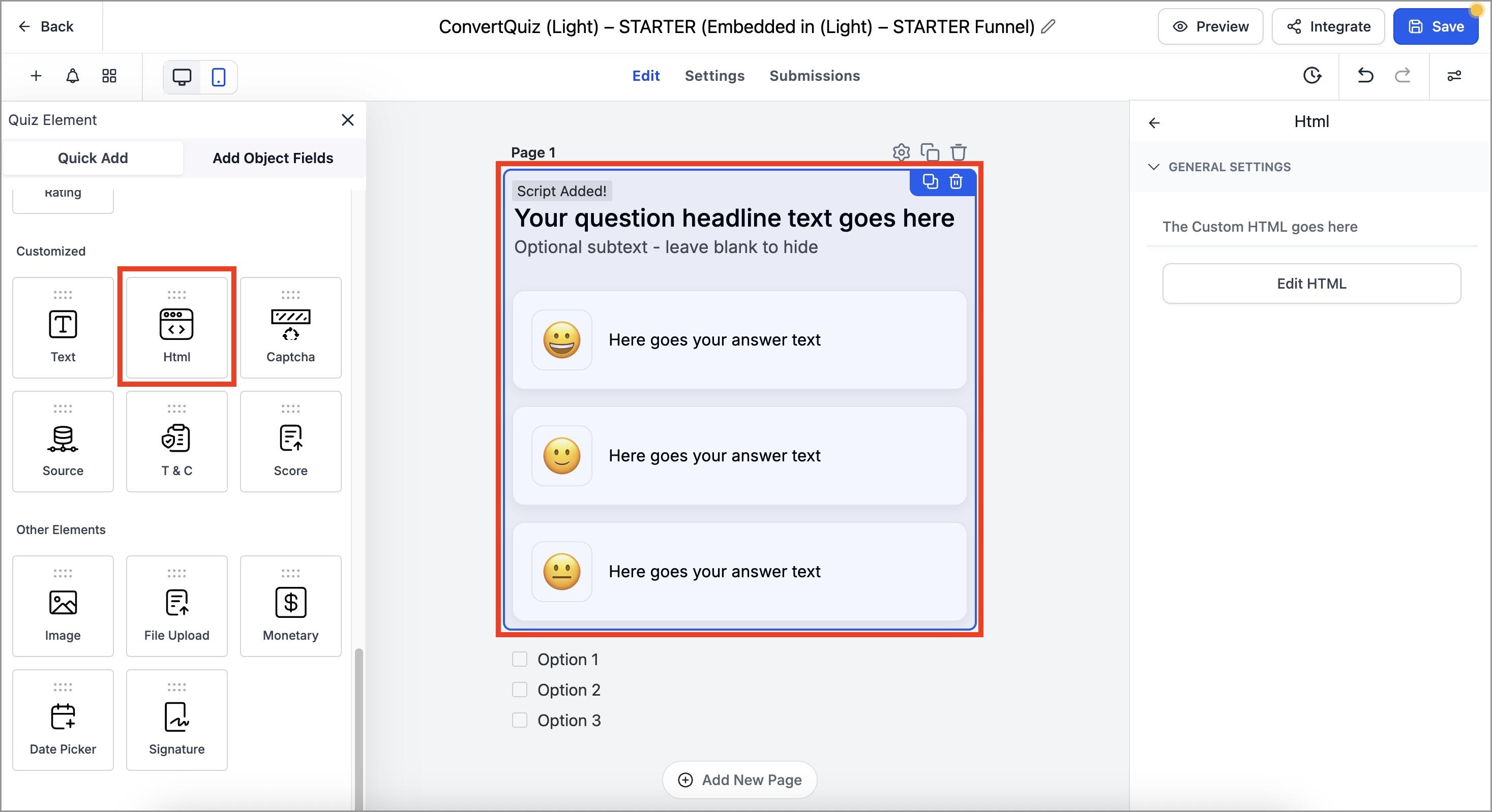 Use this if you want just the ConvertQuiz functionality and will plug it into funnels/pages you already have.