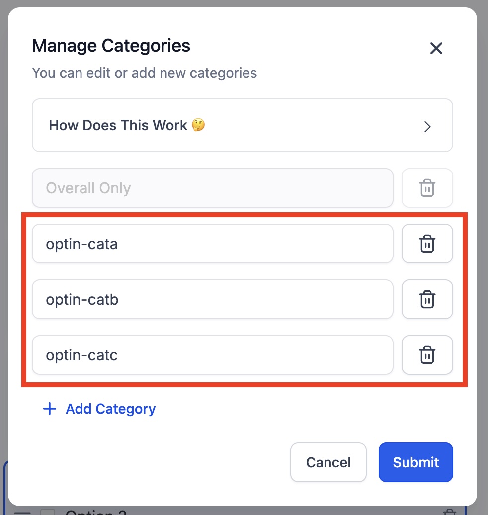 💡 NOTE: You can nest paths. If your page is /healthquiz/category-a, set the category name to healthquiz/category-a (no leading slash is fine).